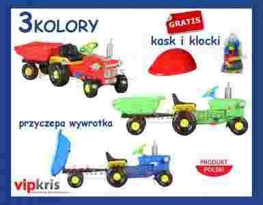 DUŻY TRAKTOR + PRZYCZEPA na pedały +GRATIS KLOCKI