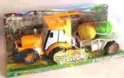 Duży traktor z przyczepką i owocami