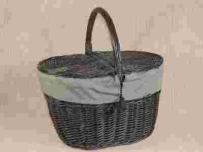 DUŻY WIKLINOWY KOSZYK Z OBSZYCIEM PIKNIK WENGE