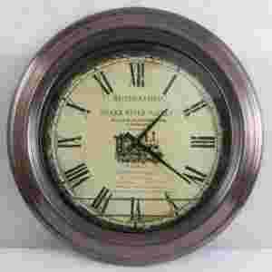 Piękny, duży metalowy zegar do powieszenia, w kolorze brązowomiedzianym z połyskiem;