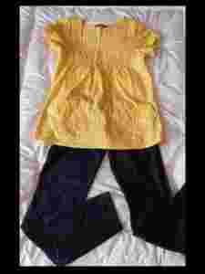 6. Żółta tunika ATMOSPHERE rozm. 8/36, w miejscu odcięcia pod biustem ma 42 cm x 2. Materiał nie jest rozciągliwy, ale przyjemny. Bluzka zadbana.