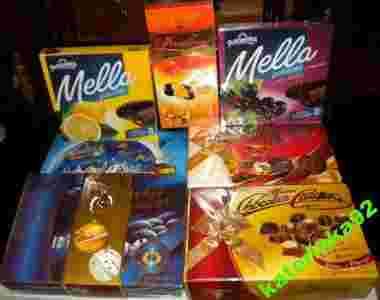 - Galaretka w czekoladzie Mella o smaku czarnej porzeczki z sokiem owocowym Jutrzenka zafoliowane 190 g / 07/2014 / cena sklepowa ok. 7 zł