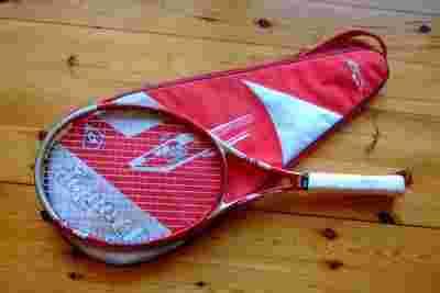 Rakieta posiada nieliczne ślady użytkowania ( kilka odprysków lakieru i otarć na górnej części rakiety,pokrowiec posida plamy.Posiada nowy naciąg Luxsilon Adrenaline 1,25 siła naciągu 23/22kg Rozmiar rączki -nr 3