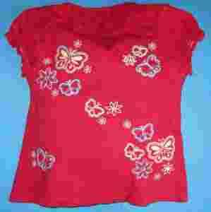 DUNNES BLUZKA CZERWONA W MOTYLE 104 3-4