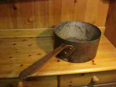Duzy miedziany rondel. Zabytek.