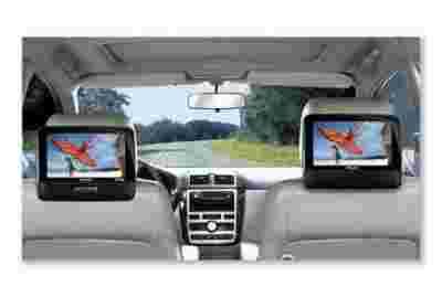 Dwa wyświetlacze pozwalają na wyświetlanie tych samych filmów wideo lub obrazów z przenośnych odtwarzaczy DVD. Wystarczy podłączyć wyświetlacze i zamontować je na zagłówkach siedzeń w samochodzie. Teraz pozostaje już tylko usiąść na tylnym siedzeniu razem z rodziną lub przyjaciółmi i delektować się ulubionymi filmami DVD oraz zdjęciami w formacie JPG.