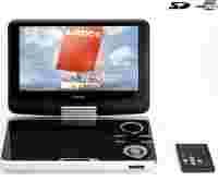 Przenośny odtwarzacz DVD z 9-calowym obrotowym o 180 stopni i uchylnym wyświetlaczem LCD TFT. Urządzenie odtwarza płyty DVD, Picture CD, Video CD, DVD-R, DVD-RW, CD-R, CD-RW, DVD+R, DVD+RW, CD oraz formaty: MP3, WMA, JPEG, MPEG4.
