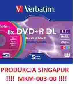 DVD+R DL VERBATIM 8,5GB KOLOROWE 5SZT W PUDEŁKACH!