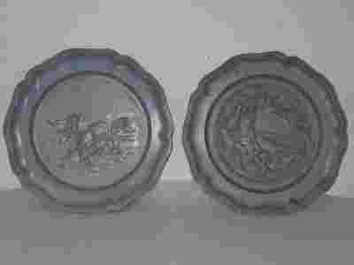 Dwa cynowe talerze myśliwskie - polowanie