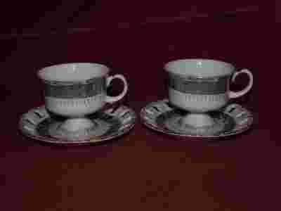Dwie ładne filiżanki z ażurowymi podstawkami.***