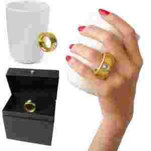 Oto prezent, który ucieszy zarówno panie, które uwielbiają błyskotki, jak i te przedstawicielki płci pięknej, które wolą bardziej praktyczne prezenty. Dwukaratowy kubek jest wyjątkowy i bardzo elegancki, ponieważ jego ucho do złudzenia przypomina piękny złoty pierścionek z wielkim brylantem. Pijąc z niego, każda kobieta poczuje się jak królowa! Kubek zapakowany jest w stylowe opakowanie, które daje duże pole do popisu obdarowującemu. Jeśli Twoja wybranka ma poczucie humoru, na pewno będzie zachwycona!