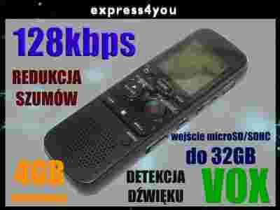 Wysokiej jakości dyktafon cyfrowy z wbudowaną pamięcią wewnętrzną 4GB oraz wejściem microSD/SDHC - obsługuje max 32GB