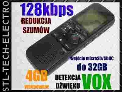 DYKTAFON CYFROWY 128kbps 4GB LCD DETEKCJA DŹWIĘKU