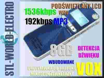 nagrywanie 1536kbps FORMAT WAV z detekcją dźwięku VOX