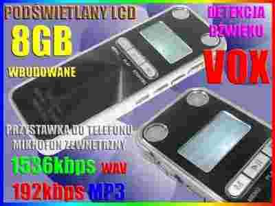 nagrywanie 1536kbps FORMAT WAV z detekcją dźwięku VOX