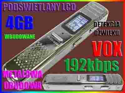 DYKTAFON CYFROWY 192kbps 4GB DETEKCJA DŹWIĘKU VOX