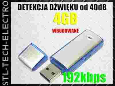 - cyfrowy dyktafon USB z wbudowaną pamięcią 4GB oraz funkcją nagrywania po detekcji dźwięku powyżej 40dB