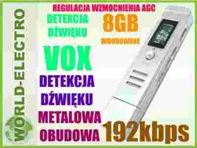 DYKTAFON CYFROWY 192kbps 8GB LCD METALOWA OBUDOWA