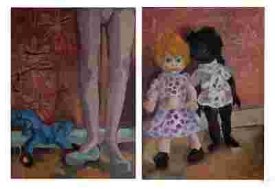DYPTYK Z LALKAMI I KONIKIEM OLEJ 2 OBRAZY 50X70