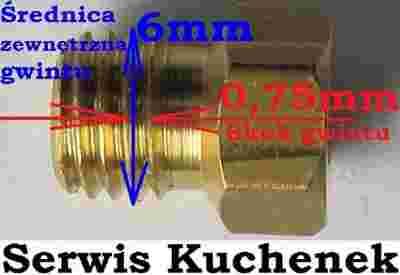 Średnica zewnętrzna gwintu- 6mm , skok gwintu - 0,75mm