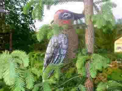 DZIĘCIOŁ DUŻY CIEMNY OZDOBA CERAMICZNA DO OGRODU