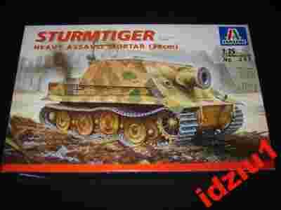 Na tej aukcji wystawiam wspaniały model niemieckiego działa pancernego "STURMTIGER" HEAVY ASSAULT MORTAR (38 cm) firmy ITALERI (numer katalogowy 299 ) w skali 1 :35. W sklepach już dawno cały zapas wyprzedano- prawdziwy hit..( tego numeru katalogowego nie kupisz już nigdzie...). Model jest nowy (wszystkie wypraski nierozerwane), model pochodzi z 1997 roku i od zakupu cały okres przeleżał w pawlaczu) Prawdziwy rarytas dla kolekcjonerów .Model jest nowy, wyciągnięty tylko do zdjęcia, do modelu dołączona instrukcja i kalkomania.