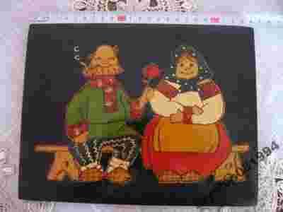 DZIADEK I BABKA,wypalany obrazek na drewnie.