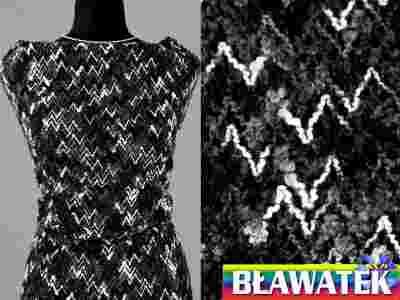Dzianina boucle, wzór jodełka, gruba, czerń