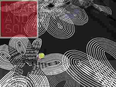 Miękka, dość cienka,  wiotka,  lekko prześwitująca, dzianina wiskozowa w kolorze czarnym, w duże, białe, stylizowane kwiaty.