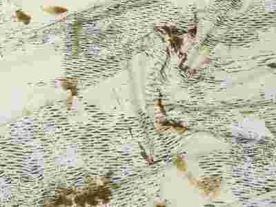 Dzianina wiskozowa (jersey), w bardzo dobrym gatunku. Materiał "ciężki", lejący, "śliski", przyjemnie chłodny w dotyku - luksusowy. Średniej grubości, kryjący, mocno elastyczny. Idealny na suknie, spódnice, bluzki. Skład- wiskoza (włókna naturalne - celuloza, poddane obróbce chemicznej), tzw. "sztuczny jedwab", pozwala skórze oddychać (z tego gatunku bardzo często szyje się elegancką bieliznę, halki). Bardzo przyjemnie "się nosi". Wzór z daleka przypomina brzozę.