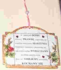 Wielkość tabliczki; 14 x 10 cm, grubość deseczki 0,8 cm