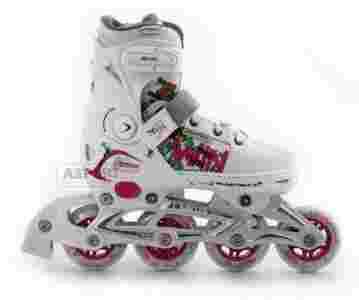 Dziecięce łyżworolki z regulacją rozmiaru, przeznaczone do jazdy rekreacyjnej i fitness, dla początkujących i zaawansowanych użytkowników.
