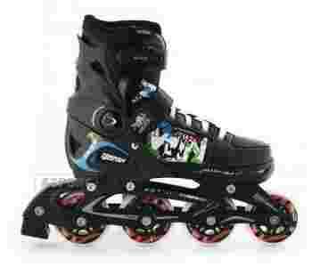 Dziecięce łyżworolki z regulacją rozmiaru, przeznaczone do jazdy rekreacyjnej i fitness, dla początkujących i zaawansowanych użytkowników.