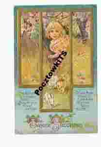 Dzieci, króliczek, secesja tłoczona SUPER 1905