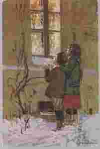 DZIECI WPATRZONE W OKNO Z CHOINKĄ Piotrowski 1937