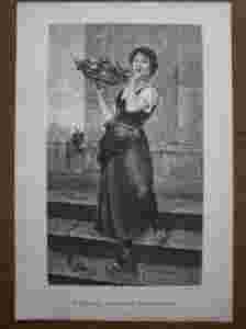 DZIEWCZYNA KOBIETA KOSZ Z KWIATAMI drzeworyt 1893