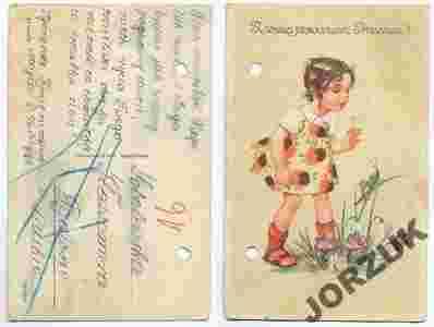 DZIEWCZYNKA DZIECKO AKWARELA IMIENINOWA LATA 50