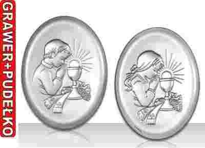 SREBRNY OBRAZEK Z DZIECZYNKĄ LUB CHŁOPCEM NA PIERWSZĄ KOMUNIĘ ŚWIĘTA