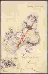 Dziewczynka z prosiaczkami w kołysce 1903r.