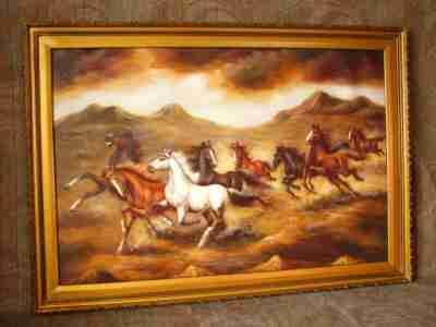 Dzikie konie - bardzo duży obraz olejny.