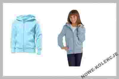 Opis: Nowa super modna bluza dziewczęca firma HANES. Bluzka w kolorze jasnego niebieskiego z kapturem. Dwie kieszenie typu kangurka, zasuwana na suwak.