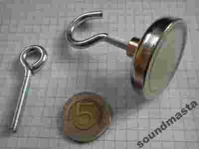 Uchwyt magnetyczny z gwintowaną tuleją, haczykiem oraz oczkiem