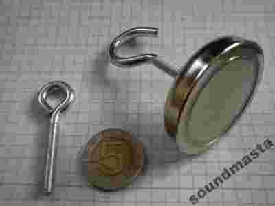 Uchwyt magnetyczny z gwintowaną tuleją, haczykiem oraz oczkiem