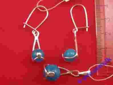 Polecam komplet srebrny z kulkami w kolorze niebieskim. Próba 925. Wymiar jak na zdjęciu. Towar nowy, polski i wyprodukowany w Polsce.