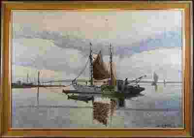 E.Ytting (*1921), Pejzaż z kutrami, bardzo dobry !