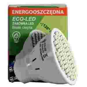 60 ledowa żarówka ECO-LED jest nowoczesną żarówką wykorzystującą jako źródło światła półprzewodnikowe diody LED. Dzięki temu osiąga dużo większą sprawność w bezpośredniej zamianie energii elektrycznej na światło. Jej główną zaletą jest małe zużycie prądu oraz to, że w czasie świecenia jest zawsze chłodna. Trzonek GU10 pozwala na zastosowanie żarówki w tradycyjnych oprawach oświetlenia punktowego.