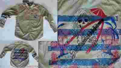 LOGO NA PLECACH NIE GUMOWE , NIE MALOWANE , HAFTOWANE HASLO SURFUJ ALBO GIN !!! CZARNA NICIA BLYSZCZACA , , METALOWE MINI CWIECZKI W KOLORZE MIEDZI