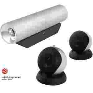 Składa się z 15-watowego „rurowego” subwoofera i dwóch kulistych głośników satelitarnych.