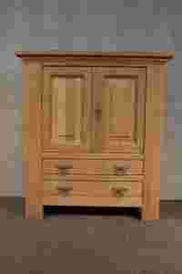 Masywna szafka - komoda wykonana w II połowie ub. wieku z litego drewna dębowego. Mebel jest oczyszczony, przygotowany do wybarwienia - można go wybielić, zawoskować, zaolejować. Konstrukcja jest stabilna, szkodników nie ma.