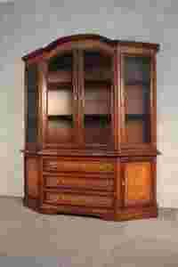 Imponujący, orzechowy kredens - witryna znanej i renomowanej, włoskiej firmy SELVA wykonany w II połowie ub. wieku. Częściowo przeszklony wspaniale nadaje się do wyeksponowania cennej porcelany i bibelotów. Front i korona mebla zdobione są przepięknymi, subtelnymi intarsjami i ozdobnym fornirem. Kredens jest w stanie bardzo dobrym, czysty, zadbany, do wstawienia. Zamki są sprawne, cztery klucze w komplecie. Przeszklona część zdejmuje się do transportu.